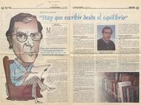 "Hay que escribir desde el equilibrio" [entrevista] / [artículo] : Jorge Abasolo Aravena. El Labrador (Diario : Melipilla, Chile)-- mar. 30, 2003, p. 5. (suplemento "En Domingo") .