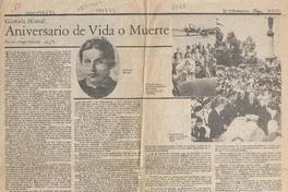 Gabriela Mistral : aniversario de vida o muerte [artículo] Luis Vargas Saavedra.