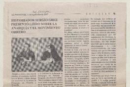 Historiador Sergio Grez presentó libro sobre la anarquía y el movimiento obrero. [artículo] La Provincia (Diario: Choapa, Chile)-- ago. 28, 2007, p. 9. La Provincia (Diario : Choapa, Chile)-- sept. 11, 2007, p. 11. .