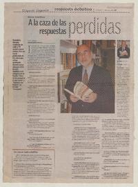 A la caza de las respuestas perdidas [entrevistas] / [artículo] : Rosa Zamora. El Mercurio de Valparaíso (Diario : Valparaíso, Chile)-- mayo 25, 2008, p. 24. .
