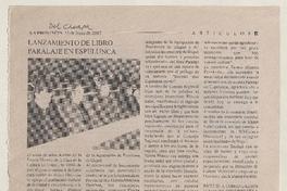 Lanzamiento de libro Paralaje en Espelunca. [artículo] La Provincia (Diario : Choapa, Chile)-- jun. 12, 2007, p. 11. .