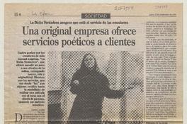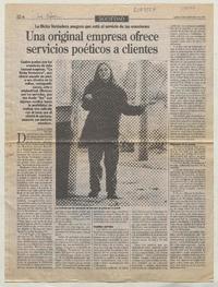 Una original empresa ofrece servicios poéticos a clientes [artículo] / Yenny Cáceres. La Epoca (Diario : Santiago, Chile)-- sept. 12, 1994, p. B6. .
