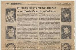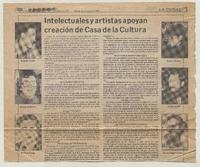 Intelectuales y artistas apoyan creación de Casa de la Cultura. [artículo]