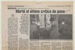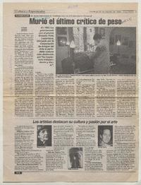 Murió el último crítico de peso. [artículo] La Nación (Diario : Santiago, Chile)-- ago. 22, 1999, p. 38. .