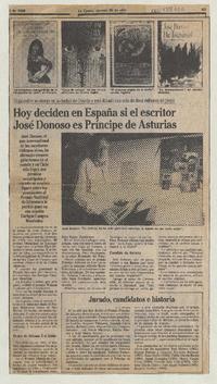 Hoy deciden en España si el escritor José Donoso es Príncipe de Asturias. [artículo] La Epoca (Diario : Santiago, Chile)-- abr. 20, 1990, p. 43. .