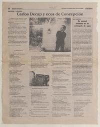 Carlos Decap y ecos de Concepción. [artículo] La Tribuna (Diario : Los Angeles, Chile)-- abr. 7, 2008, p. 22. .