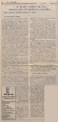 El rudo camino de una chilena que conquistó la gloria... [artículo] / Ruth Duhart Pilgrim. El Heraldo (Diario : Linares, Chile)-- abr. 5, 2008, p. 2. .