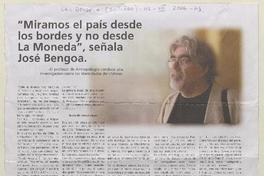 "Miramos el país desde los bordes y no desde La Moneda", señala José Bengoa. [artículo] La Brújula (Revista : Santiago, Chile)-- no. 3 (diciembre 2006), p. 3. .
