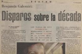 Benjamín Galemiri : disparos sobre la década [entrevista] / [artículo] : Marcela Fuentealba. El Metropolitano (Diario : Santiago, Chile)-- jun. 21, 1999, p. 24. .