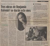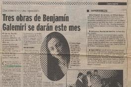 Tres obras de Benjamìn Galemiri se darán este mes [artículo] Leopoldo Pulgar I.
