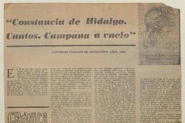 "Constancia de Hidalgo. Cantos. Campana a vuelo" [artículo] / Yerko Moretic. El Siglo (Diario : Santiago, Chile)-- abr. 28, 1968, p. 14. .