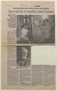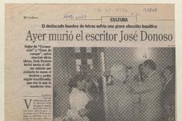 Ayer murió el escritor José Donoso. [artículo] La Época (Diario : Santiago, Chile)-- dic. 8, 1996, p. 32. .
