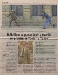 Definitivo: se puede decir y escribir sin problemas "poto" y "paco" [entrevista] / [artículo] : Paulina Barriga. Las Últimas Noticias (Diario : Santiago, Chile)-- oct. 19, 2008, p. 2. .