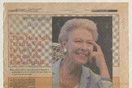 "Dios hace más difícil la vida de los viejos para que no duela dejarla" [artículo] / Ana Rosa Romo R. El Mercurio (Diario : Santiago, Chile)-- ene. 20, 1989, p. 7 (suplemento). .