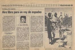 Aire libre para un rey de espadas [artículo] / Yolanda Montecinos. La Nación (Diario : Santiago, Chile)-- nov. 29, 1988, p. 29. .