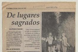 De lugares sagrados [artículo] / Luis Ernesto Cárcamo. La Época (Diario : Santiago, Chile)-- jul. 4, 1993, p. 6 (suplemento). .