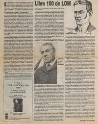 Libro 100 de LOM [artículo] / Volodia Teitelboim. Punto Final (Revista : Santiago, Chile)-- no. 388 (febrero 21, 1997) p. 19. .
