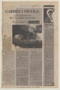 Gabriela Mistral [artículo] / Rosa María Verdejo. La Nación (Diario : Santiago, Chile)-- dic. 9, 2001, p. 7 (suplemento). .