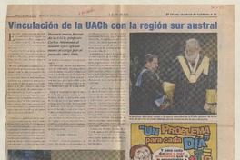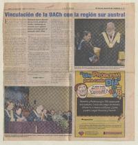 Vinculación de la UACh con la región sur austral. [artículo] El Diario Austral (Diario : Valdivia, Chile)-- jul. 2, 2002, p. A11. .