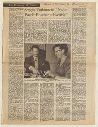 Sergio Vodanovic: "nadie puede enseñar a escribir". [entrevista] [artículo] : Ercilla (Revista : Chile)-- no. 1377 (octubre 11, 1961) p. 11. .
