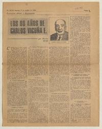 Los 80 años de Carlos Vicuña F. [artículo] / Martín Ruiz. El Siglo (Diario : Santiago, Chile)-- oct. 9, 1966, p. 5. .