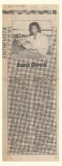 Sara Geck [entrevista] / [artículo] : Plinio el Viejo. La Tercera (Diario : Santiago, Chile)-- mayo 21, 1989, p. 15. .