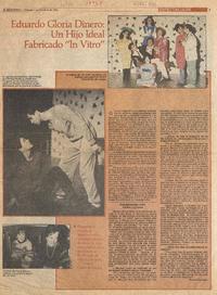 Eduardo Gloria Dinero : un hijo ideal fabricado "In vitro" [entrevista] / [artículo] : Rosario Larraín. El Mercurio (Diario : Santiago, Chile)-- oct. 3, 1986, p. 5 (suplemento). .
