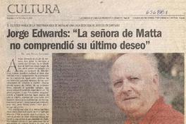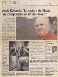 Jorge Edwards : "La señora de Matta no comprendió su último deseo" [entrevista] [artículo] : Paulina Toro.