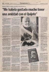 "Me habría gustado mucho tener una amistad con el Quijote" [entrevista] / [artículo] : Fernanda García. El Mercurio (Diario : Valparaíso, Chile)-- jul. 27, 2003, p. 22. .
