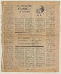 El presidente Balmaceda y la historia [artículo] / M. C. G. PEC (Diario : Santiago, Chile)-- no. 459 (jun. 23, 1972) p. 11. .