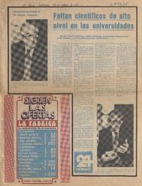 Faltan científicos de alto nivel en las universidades [entrevista]. [artículo] : 24 Horas (Diario : Valdivia, Chile)-- nov. 13, 1982, p. 24. .