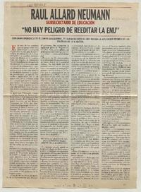 Raúl Allard Neumann subsecretario de educación "No hay peligro de reeditar la ENU" [entrevista] [artículo] : Eliana Jiménez de la Jara.