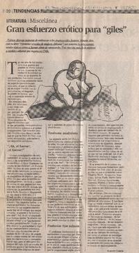 Con esfuerzo erótico para "giles" [artículo] / Augusto Colarte. El Sur (Diario : Concepción, Chile)-- ago. 29, 2004, p. 28. .