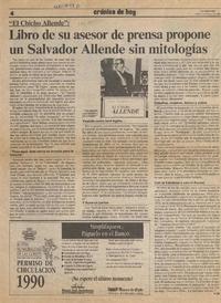 Libro de su asesor de prensa propone un Salvador Allende sin mitologías [artículo] / V. M. La Segunda (Diario : Santiago, Chile)-- mar. 5, 1990, p. 4. El Austral (Diario : Osorno, Chile)-- mar. 9, 1990, p. A15. .