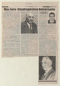 Max Jara: Cuadragésimo Aniversario [artículo] Jaime Gatica Jorquera.