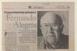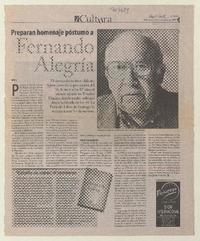 Preparan homenaje póstumo a Fernando Alegría [artículo] Roberto Careaga.