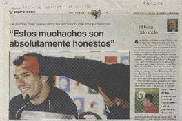 "Estos muchachos son absolutamente honestos" [entrevista] / [artículo] : Cristián Pino. Las Últimas Noticias (Diario : Santiago, Chile)-- jun. 19, 2010, p. 4 (suplemento "Deportes") .
