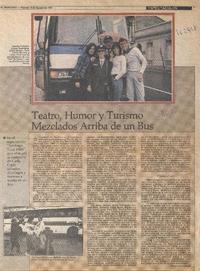 Teatro, humor y turismo mezclados arriba de un bus [artículo] / Rosario Larraín M. El Mercurio (Diario : Santiago, Chile)-- ago. 19, 1988, p. 5 (suplemento) .