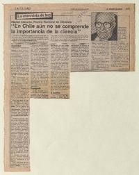 "En Chile aún no se comprende la importancia de la ciencia" [entrevista] / [artículo] : José Araya Torres. El Austral (Diario : Temuco, Chile)-- sept. 9, 1991, p. A19. .