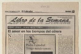El Amor en los tiempos del cólera [artículo] / Jorge Andrés Palma El Labrador (Diario : Melipilla, Chile)-- sept. 12, 2004, p. 11. .