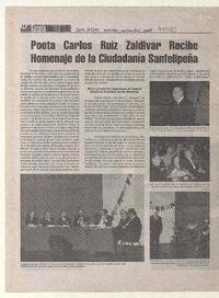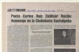 Poeta Carlos Ruíz Zaldivar recibe homenaje de la ciudadanía sanfelipeña [artículo] / Gaceta Municipal (Diario : San Felipe, Chile)-- oct-nov. 2005, p. 14 y 15. .
