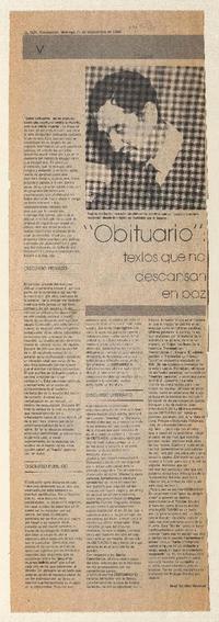 "Obituario", textos que no descansan en paz [artículo] Jorge Sánchez Villarroel.