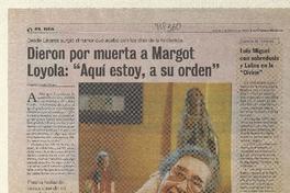 Dieron por muerta a Margot Loyola: "aquí estoy, a su orden" (entrevista) [artículo]Orietta Santa María.