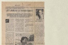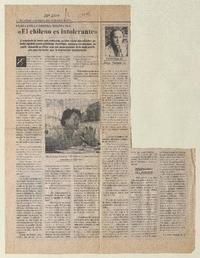 El chileno es intolerante [artículo] / Jorge Abasolo Aravena. La Tribuna (Los Angeles). -- mar. 15, 1999, p. 4 y 15 retr. .