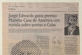 Jorge Edwards gana premio Planeta-Casa de América con novela sobre poetas y Cuba [artículo] Roberto Careaga C.