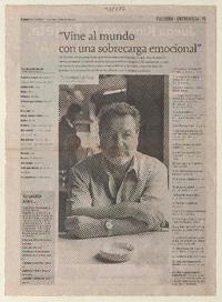 "Vine al mundo con una sobrecarga emocional" [entrevista] / [artículo] : Tania Merino Macchiavello. El Diario de Concepción (Concepción, Chile)-- feb. 7, 2010, p. 19. .