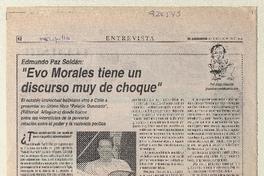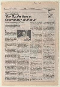 "Evo Morales tiene un discurso muy de choque" [entrevista] / [artículo] : Jorge Abasolo. El Labrador (Diario : Melipilla, Chile)-- mar. 2, 2008, p. 12. .