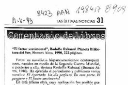 "El factor sentimental" [artículo] / Milton Aguilar G. Las Últimas Noticias (Diario : Santiago, Chile)-- mayo 11, 1993, p. 31 .
