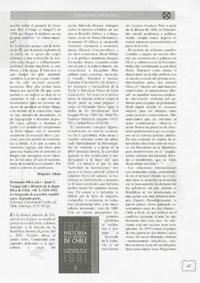 "Historia de la República de Chile, Vol. 2:1826-1881.La búsqueda de orden republicano. Segunda parte" [artículo] / E.J.A. Ciudad de los Césares (Revista : Santiago, Chile)-- no. 126, (febrero- abril 2021), p. 47 y 48. .