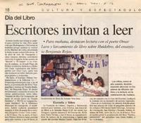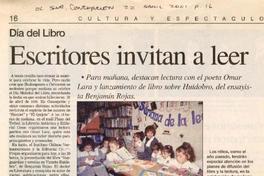 Escritores invitan a leer. [artículo]. El Sur (Diario : Concepción, Chile)-- abr. 22, 2001, p. 16. .